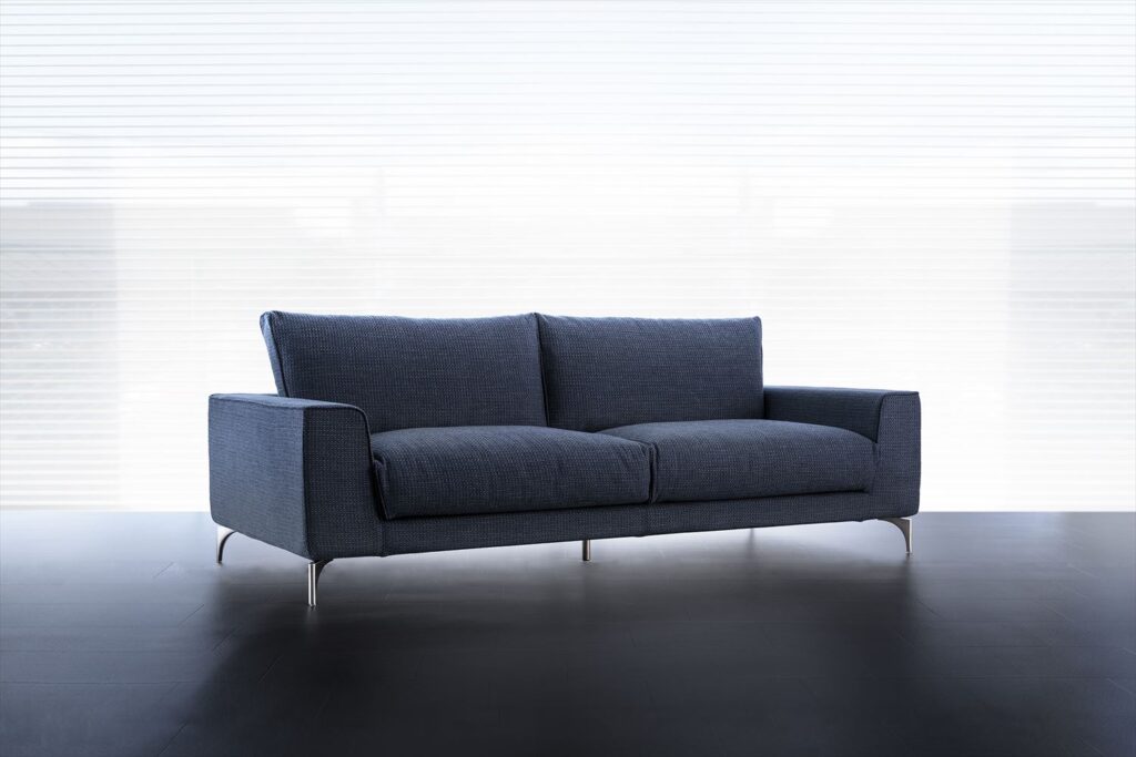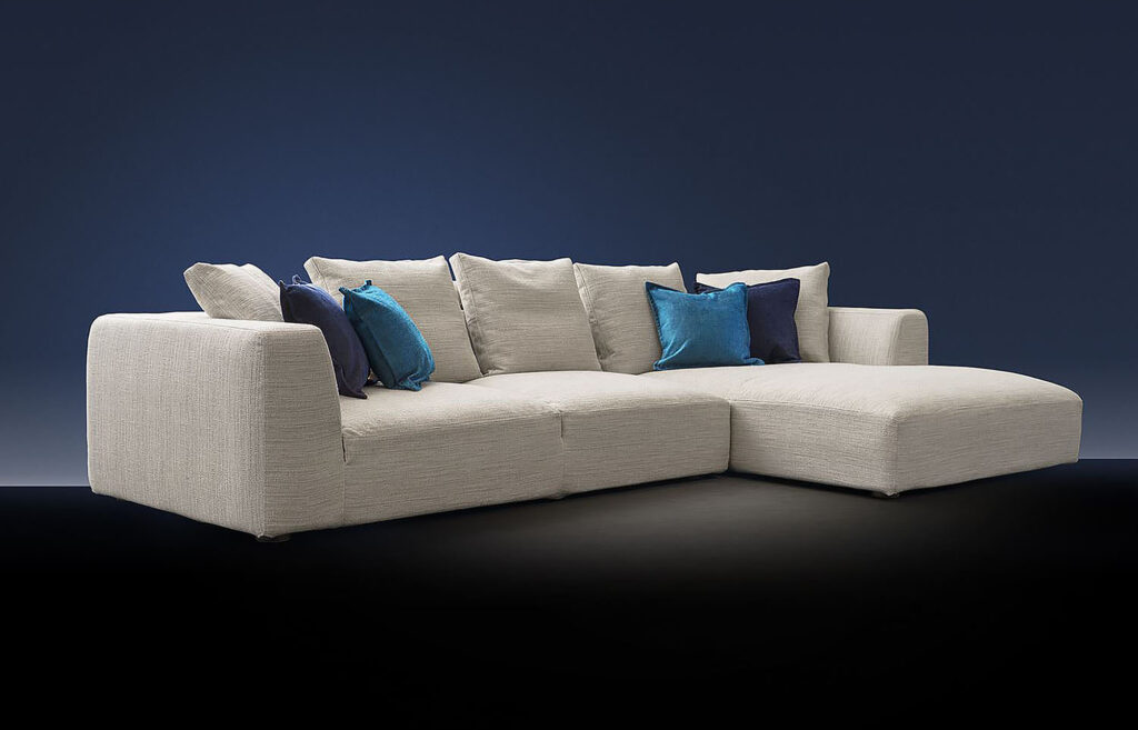 ソファ全体の奥行きは約1mあり、座面はワンシートに繋がったフラットな積層ウレタンクッションを採用することで上がり込みやすいデザインになっています。