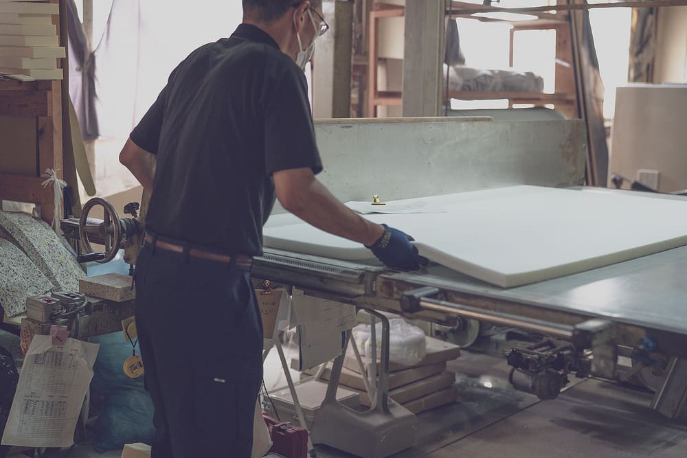 「LB SOFA」の座面クッションを作るだけで、合計9種類のウレタンが使用されているのです。