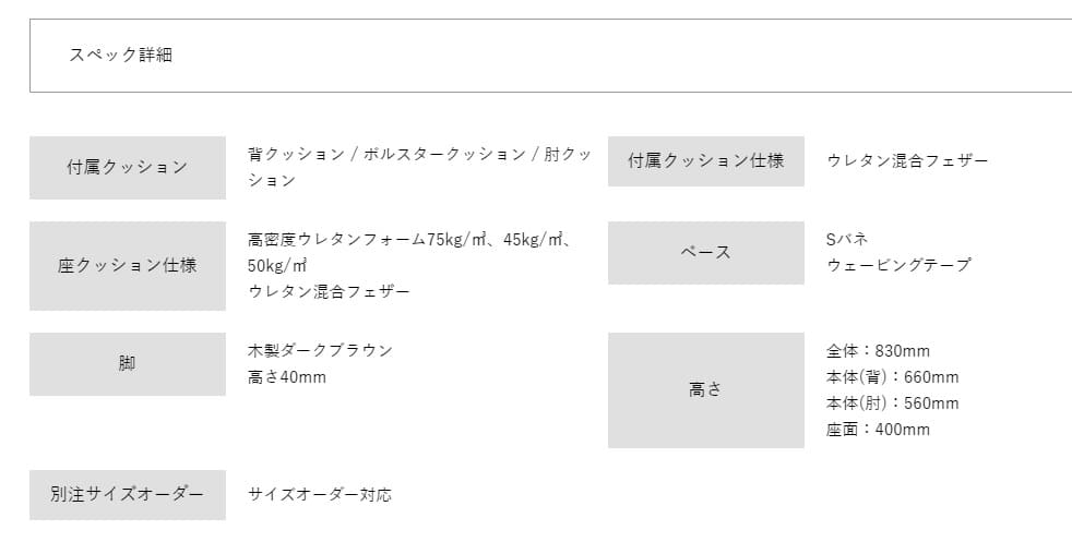 もし、ソファの「スペック表が存在しない」「スペックを紹介出来ない」というソファがあるなら、購入は避けた方が良いでしょう。