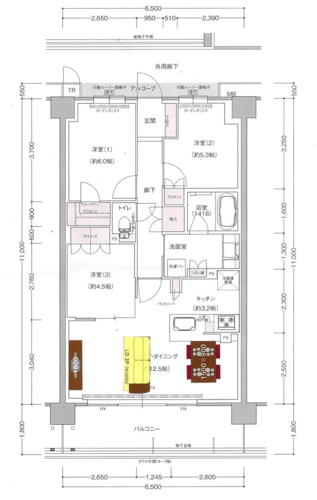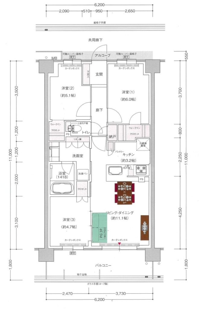 マンション住まいだと、必ずサイズの入った図面があると思います。