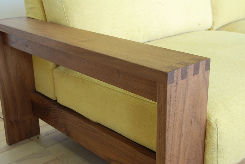 同じ木枠フレームソファでも、匠ソファの「LE SOFA」のように、アームクッションがあれば木枠アームを感じることがないので寝ころぶことが可能です。