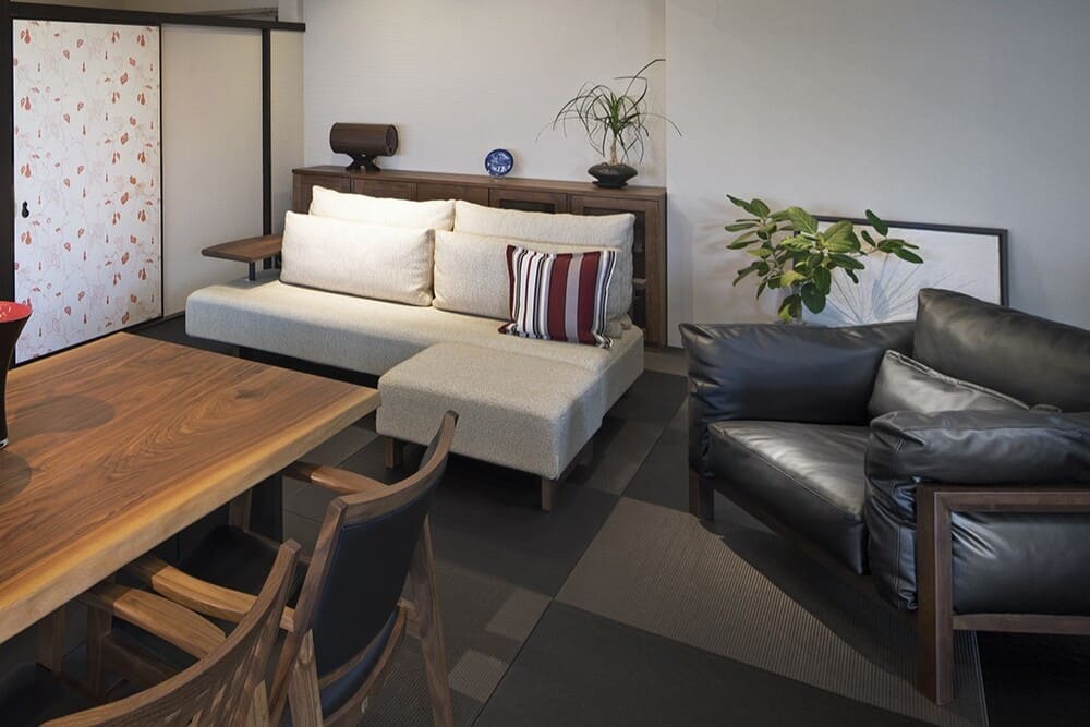 国産ソファブランド「匠ソファ」は京都発祥のソファブランドで、本店である「匠ソファ京都本店」は琉球畳のコーナーがあり、「和室」や「畳」に合うソファをご紹介しております。