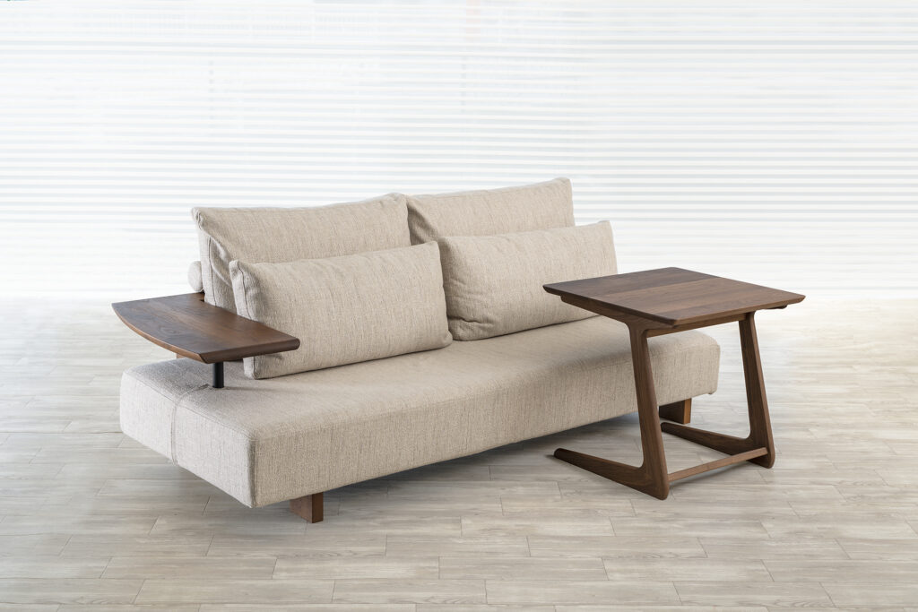 また、アームレス側にサイドテーブルを置くと便利!