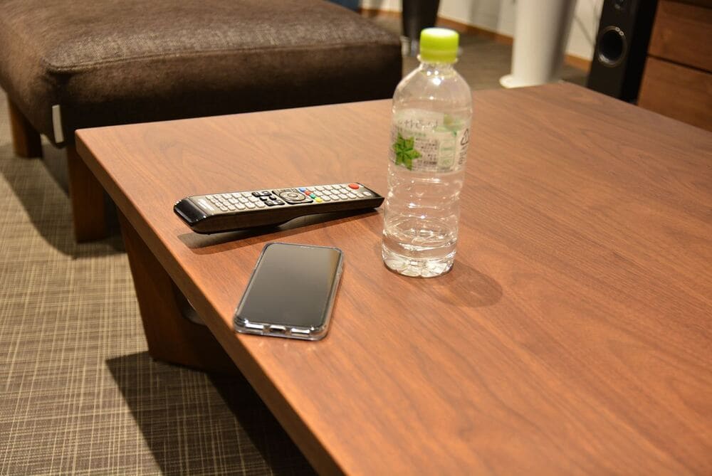 そして、「リビングテーブル」に置くものとしたら携帯電話、リモコン、飲み物、おつまみぐらいでしょうか。