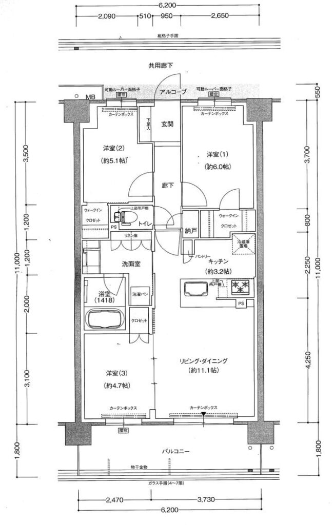 3LDK:68.2㎡(縦長LDK)