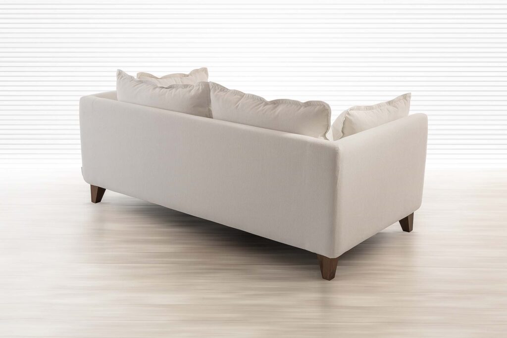 ふんわりと膨らんだ大きなフェザークッションと高さのあるアームが印象的なソファです。