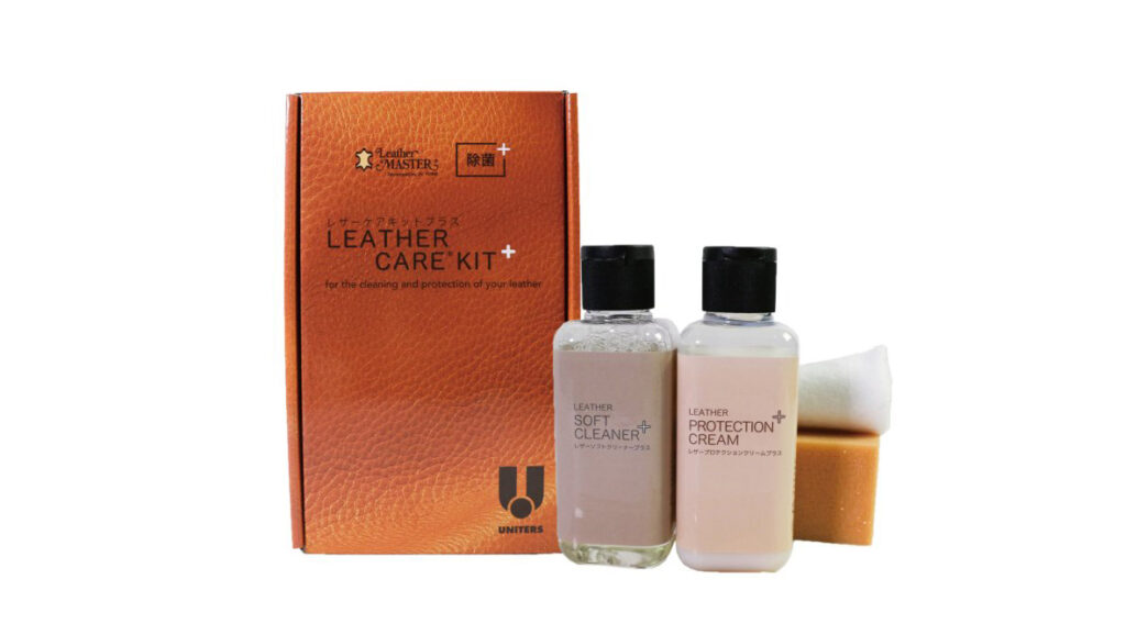 最も良い方法は、本革ソファ用「ケアセット」を使用することです。こちらはユニタスの「レザーケアキットプラス」ですが、ほとんどのソファブランド・メーカーがこちらのケアセットを使用しております。