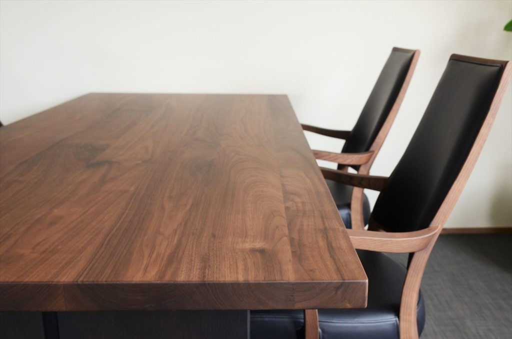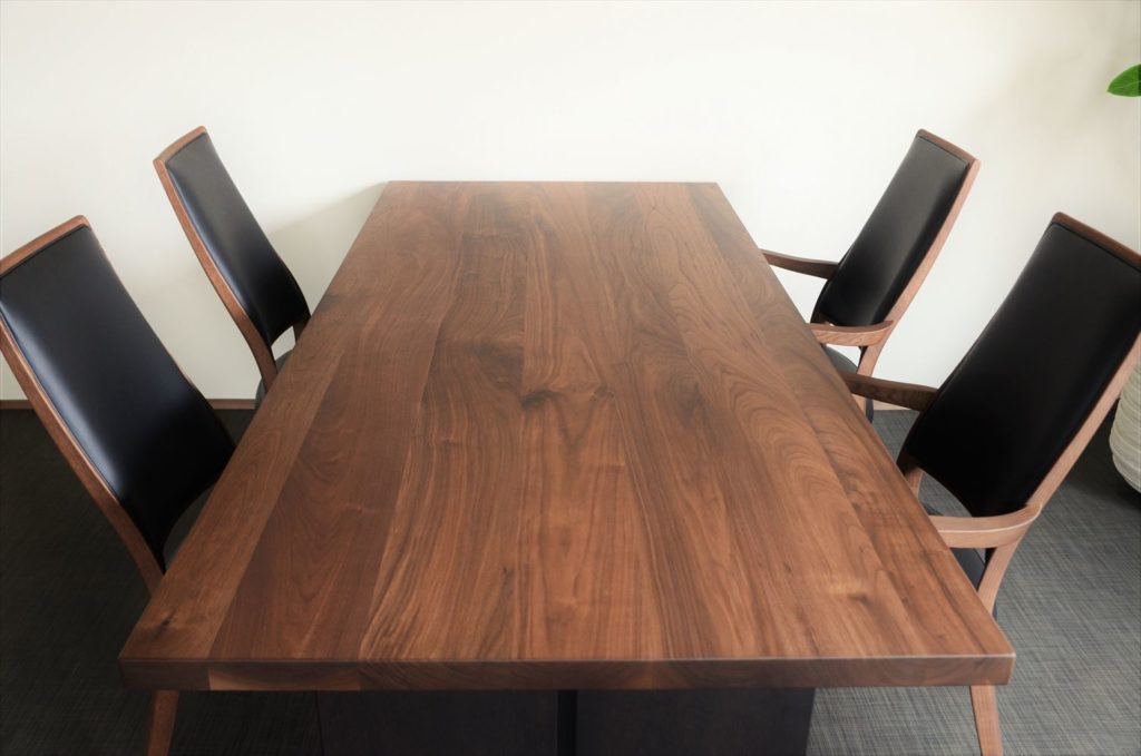 40mm厚の無垢材天板は迫力満点です。最高グレードのウォールナットのみを厳選した、美しい木目にご注目下さい。