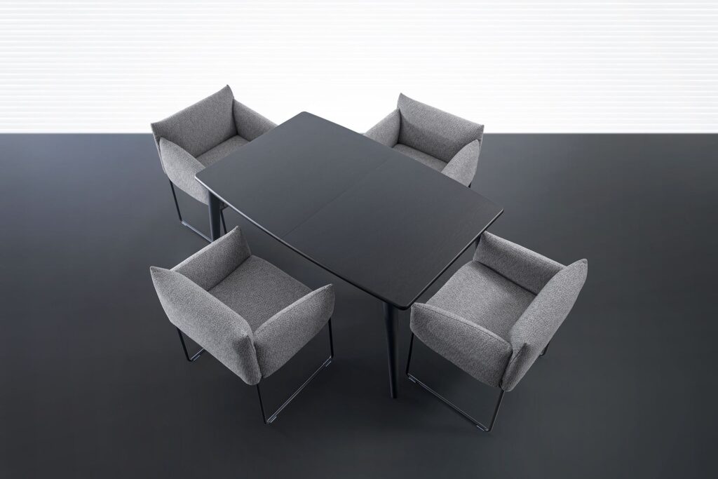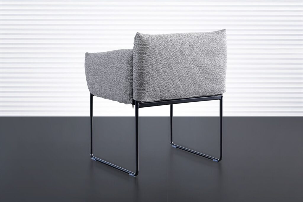 ウレタンとファブリックに包み込まれ、ソファのような感覚でくつろげるダイニングチェアです。