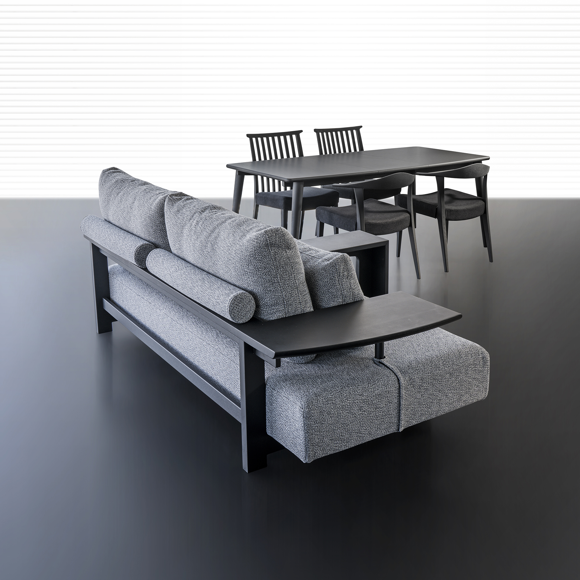 「LD SOFA・BKP色」との「匠ブラック」コーディネート。