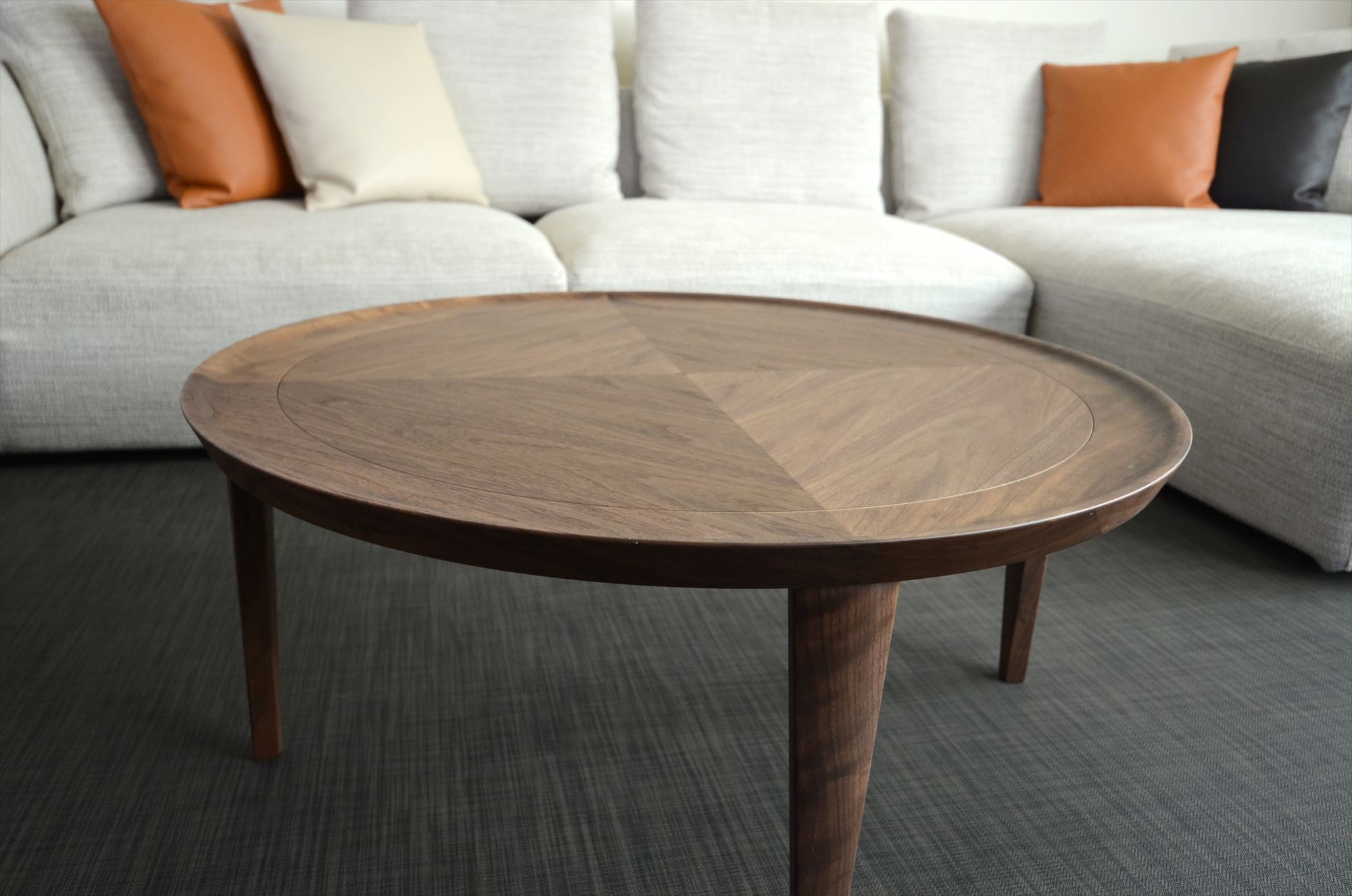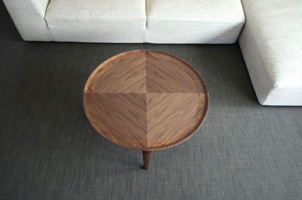 匠ソファのラグジュアリーシリーズ「RIAN-利庵」のデザイナー・岩倉榮利デザインのリビングテーブル「凛-RIN-」。