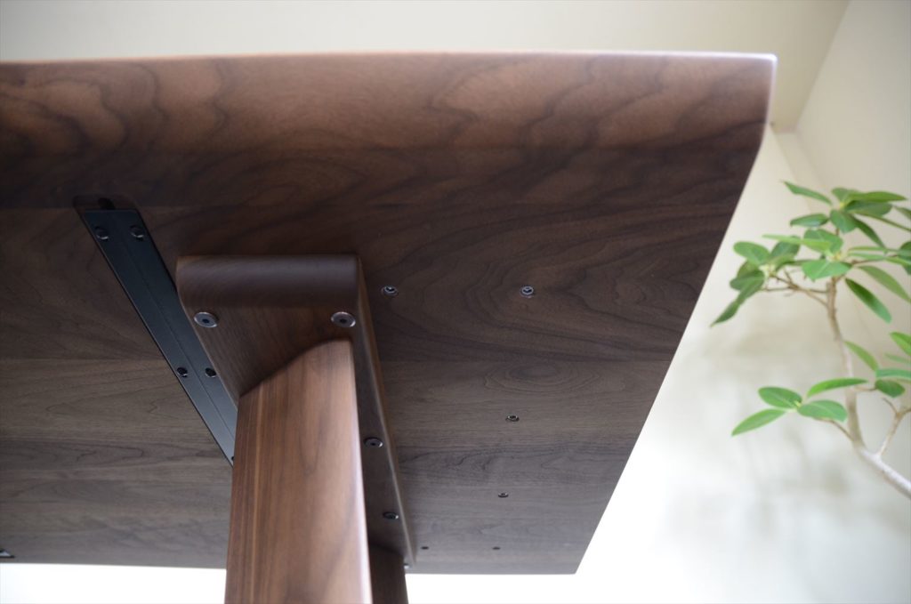 脚の位置は内側と外側で選べます(W1550以上)。写真はW1800のテーブルで、脚は内側に取り付けています。