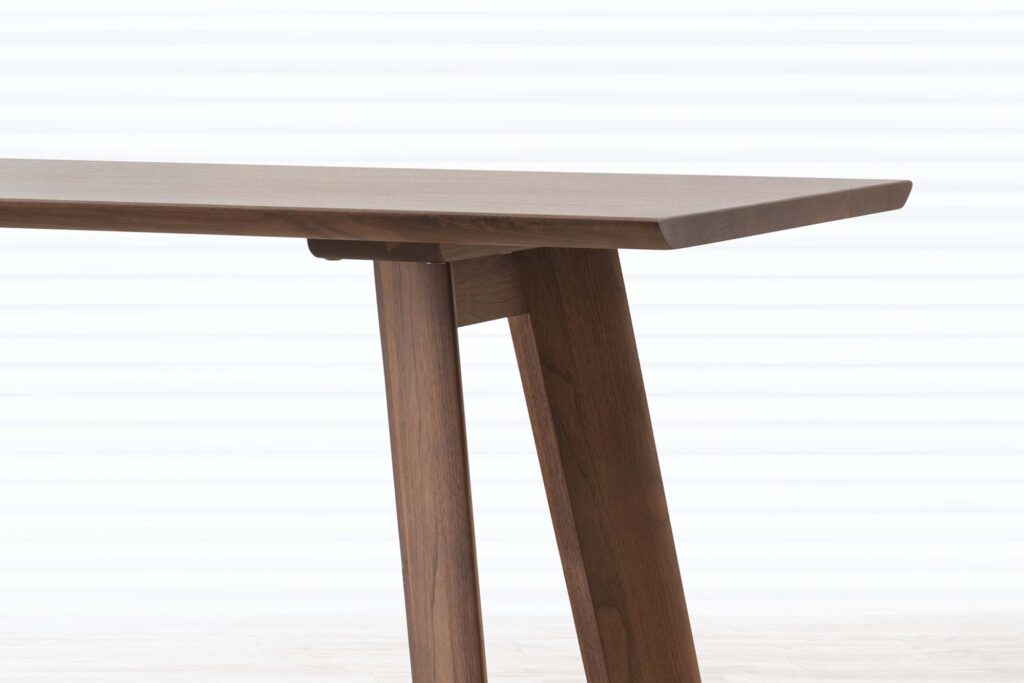 シャープに加工された天板は、30mmとしっかりと厚みがあり、重厚感を感じます。