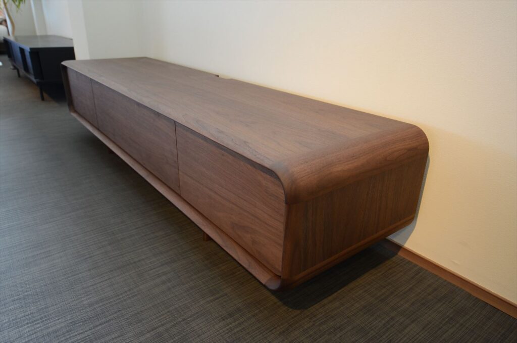 アールがかった額縁デザインが特徴の上質なTVボード。
