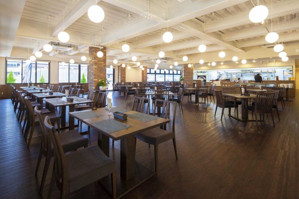 「タクミカンファニチャー」の家具はレストラン・カフェ用としてデザインされており、実際に「匠館」のレストラン、カフェで使われています。