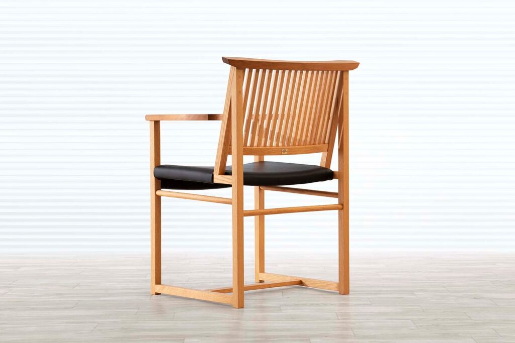 背中の格子と直線ラインのデザインが美しく、畳みの上にも合う「摺り足デザイン」が特徴の「WAZAチェア」。