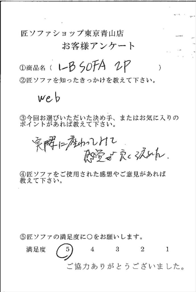 国産ソファブランド「匠ソファ」を気に入られ、東京に来られた際に匠ソファショップ東京青山店にご来店くださいました。