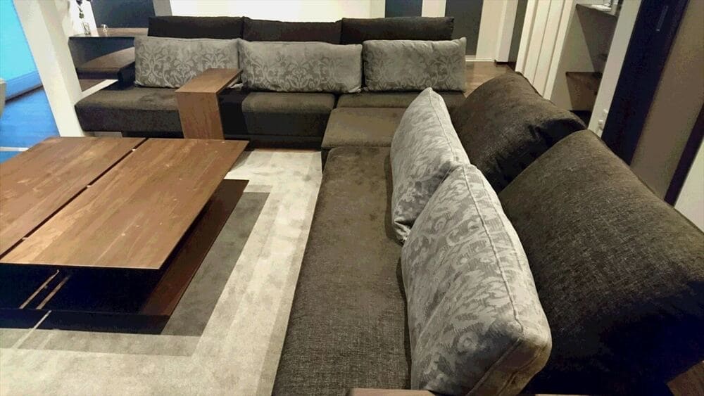 ソファ3台とオットマンを組み合わせて