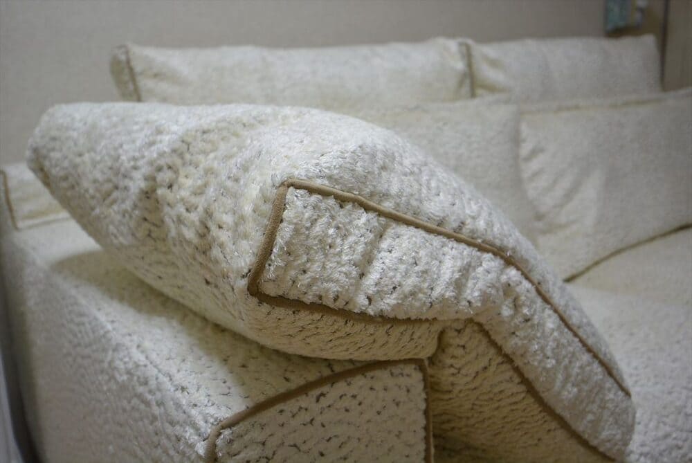K様は手触りが優しく気持ち良いHUS-VANILLA ICEに、パイピングのSaharaを合わせてコーディネートされました。
