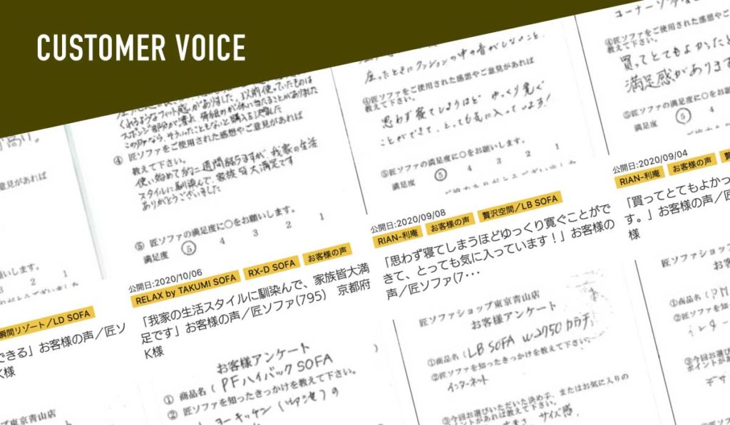 その中で最も参考になるのは、そのソファを「実際に使われているお客様の声」です。